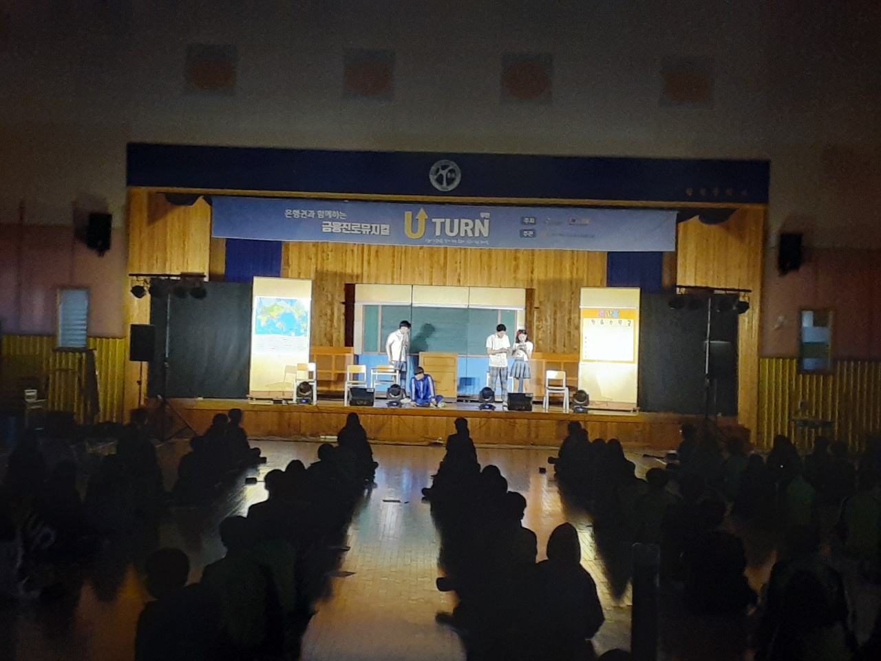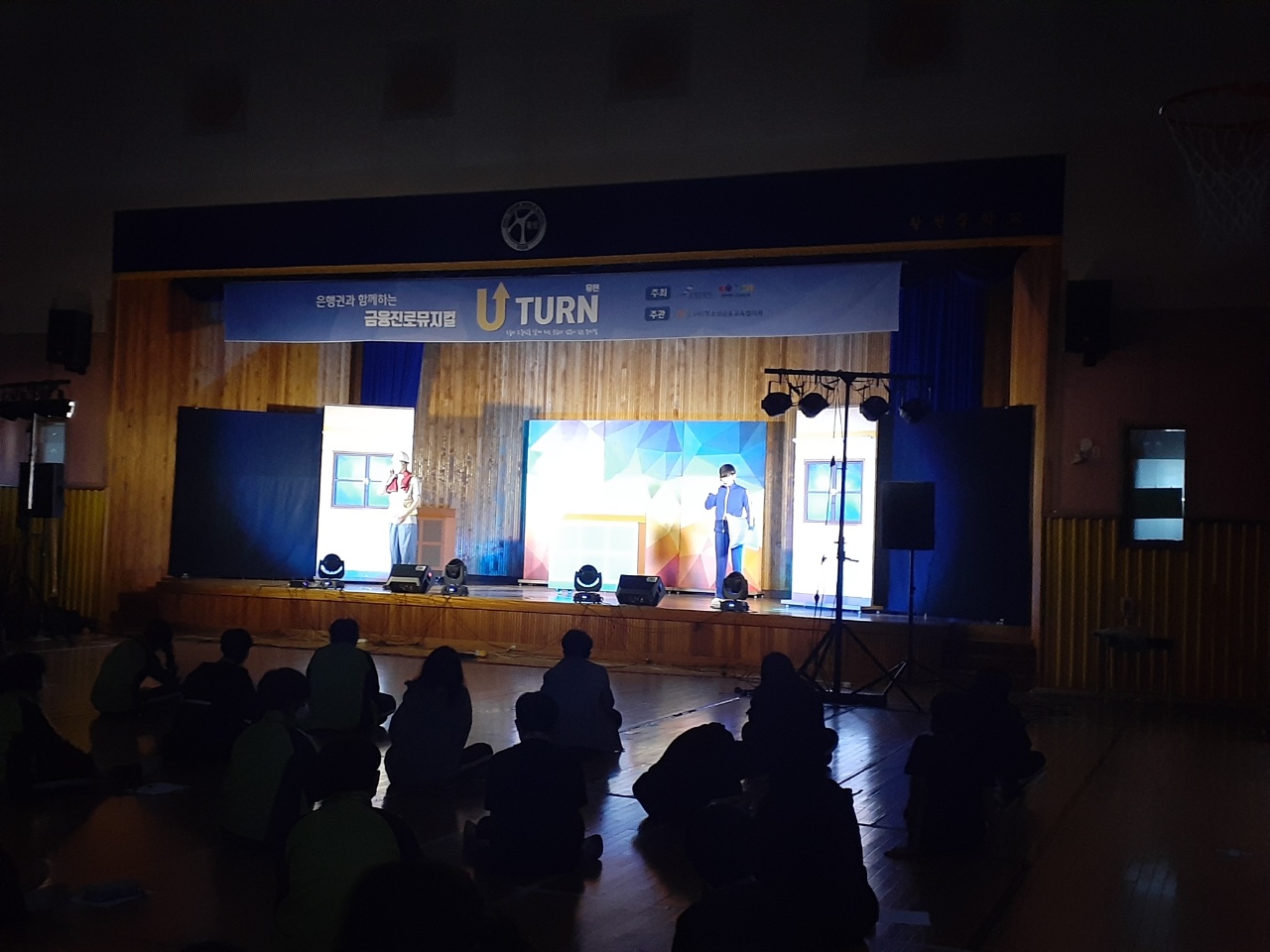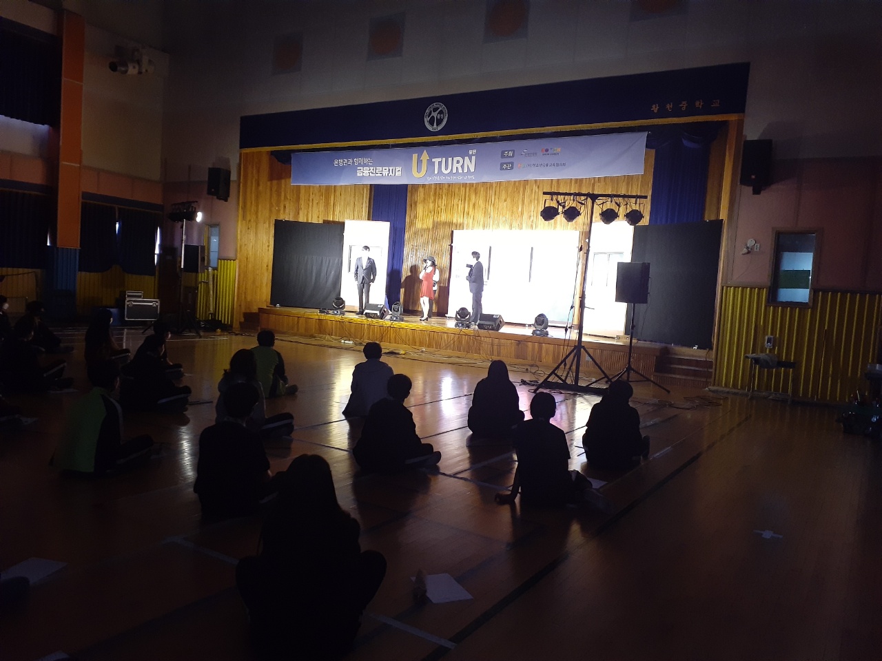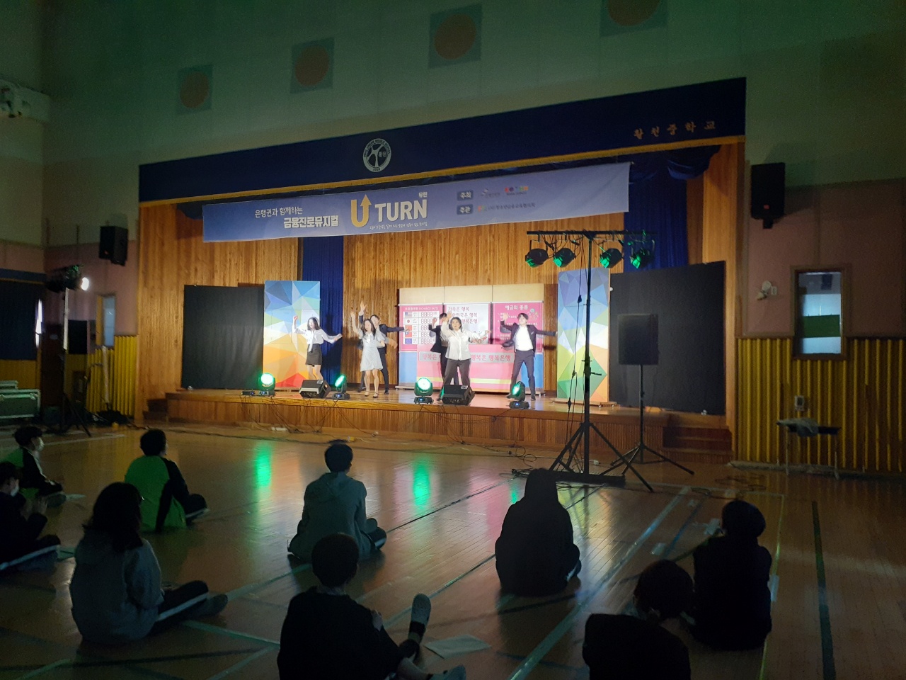 2021. 11.1.(월) 3교시~4교시 체육관에서 자유학년제 2학기 3차 진로체험으로 금융진로뮤지컬 "U턴" 공연관람을 하였습니다.