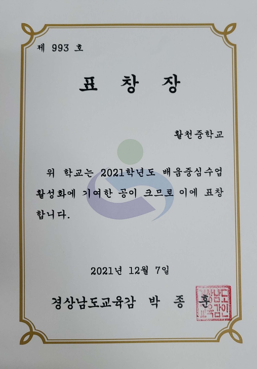 2021학년도 배움중심수업 활성화 표창장 수여