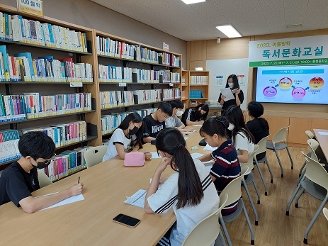 7. 20.(목) ~ 21.(금) 양일간 여름방학 독서문화교실 프로그램으로 <제로웨이스트 실천을 위한 친환경 고체샴푸바 만들기>와 <독서 디베이트> 수업을 실시하였습니다.