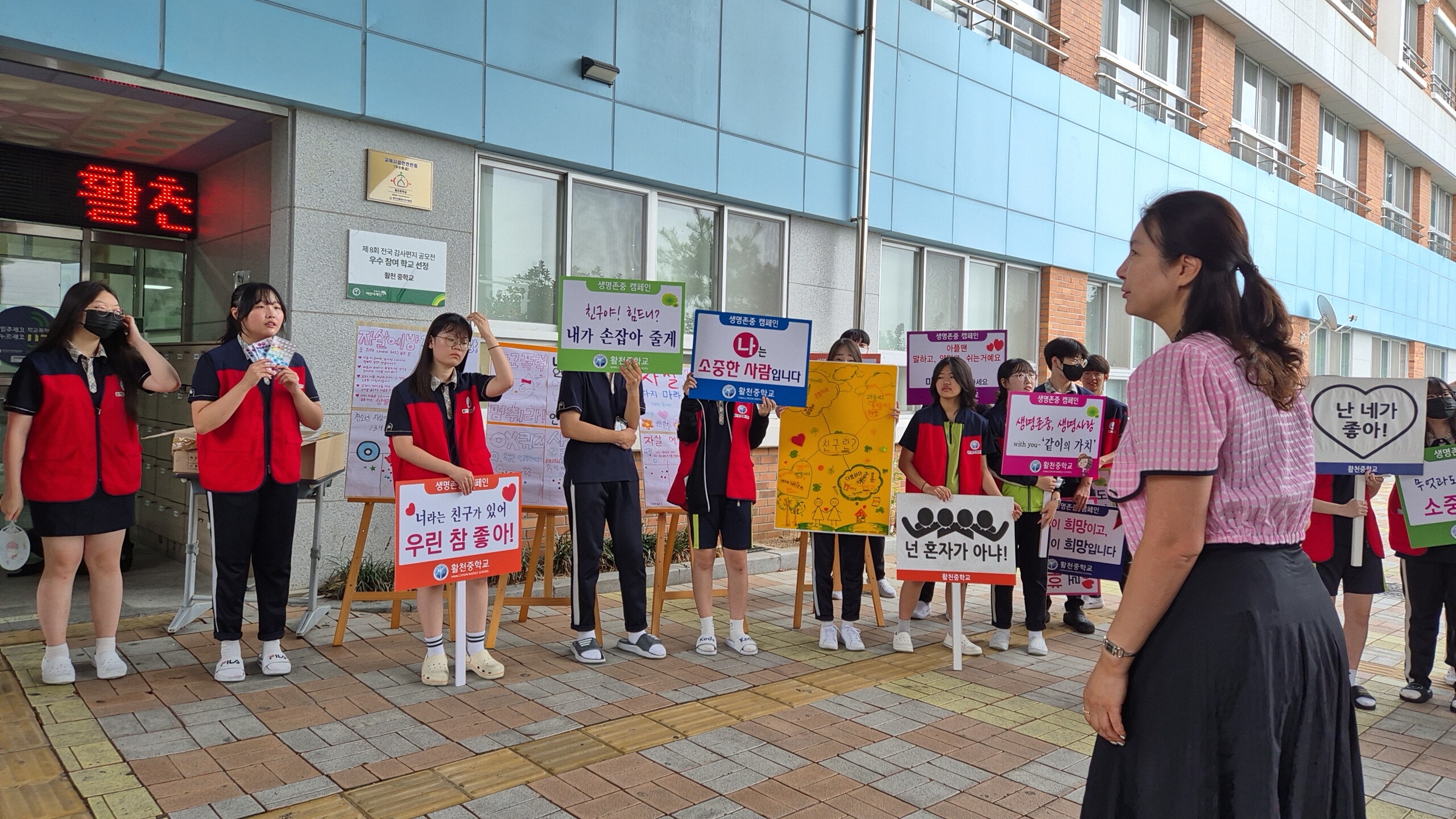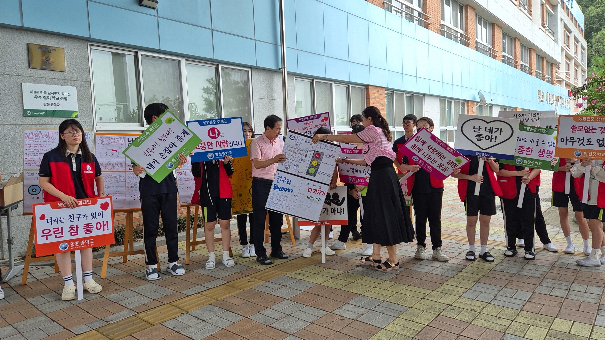 2학기 생명존중 자살예방 캠페인을 교장, 교감선생님, 솔리언또래상담자들과 함께 실시하였습니다.